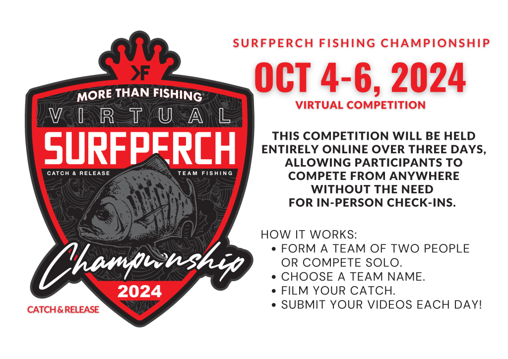 More Than Fishing now has an official measuring tape that will be used on ALL More Than Fishing Tournaments. If you joined in the past More Than Fishing competitions (specifically the 2023 & 2024 MTF Surf Fishing Tournament as well as the 2023 MTF Surfperch Fishing Tournament) and you received our official measuring tape (see image), you may re-use the measuring tape. ONLY the measuring tape pictured can be used at the tournament. Older versions of the measuring tape will NOT be acceptable.